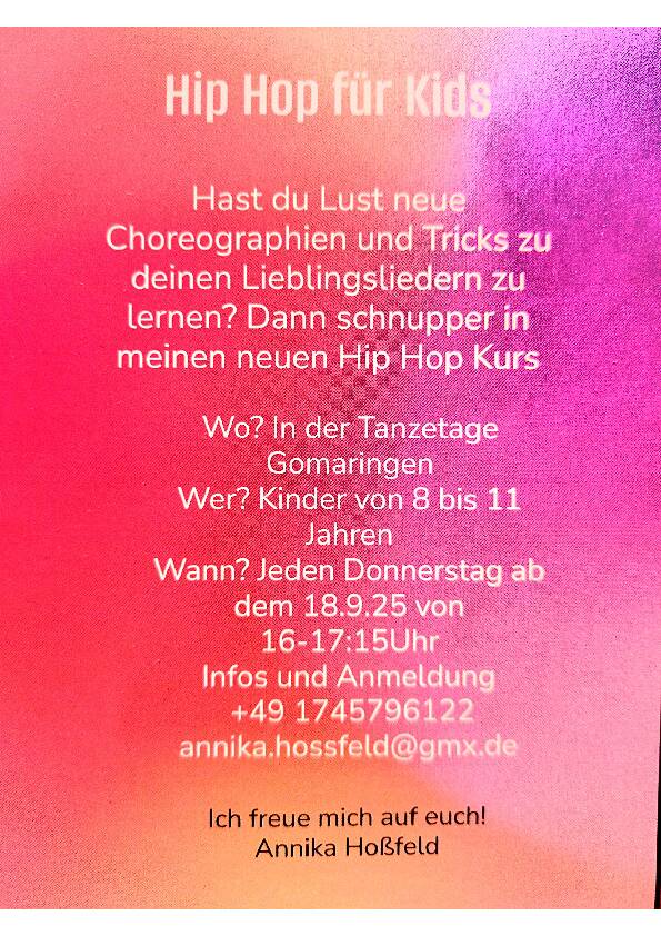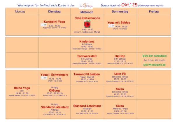 wir starten am 24.Sept. zu neuen Zeiten 18 - 19 Uhr - Schnuppertermine am 24.Sept und 1.Okt.´25